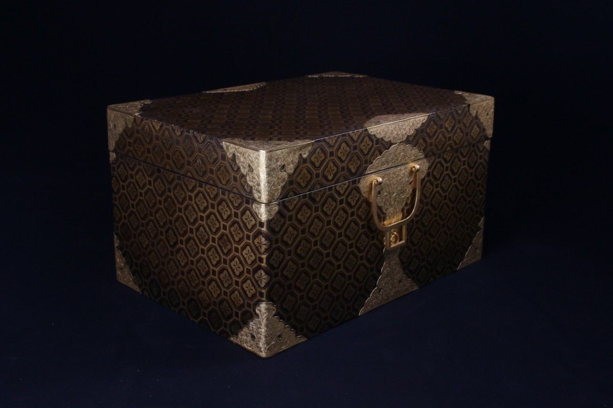 Les coffres japonais ou hasamibako sont des objets décoratifs très prisés. Ornés de môns, emblèmes du clan de leur commanditaire, ils sont aujourd’hui recherchés car ils s’intègrent parfaitement dans un intérieur grâce à leur présence, à la fois sobre par leurs lignes et riche par leurs décors dorés et leurs bronzes finement travaillés.